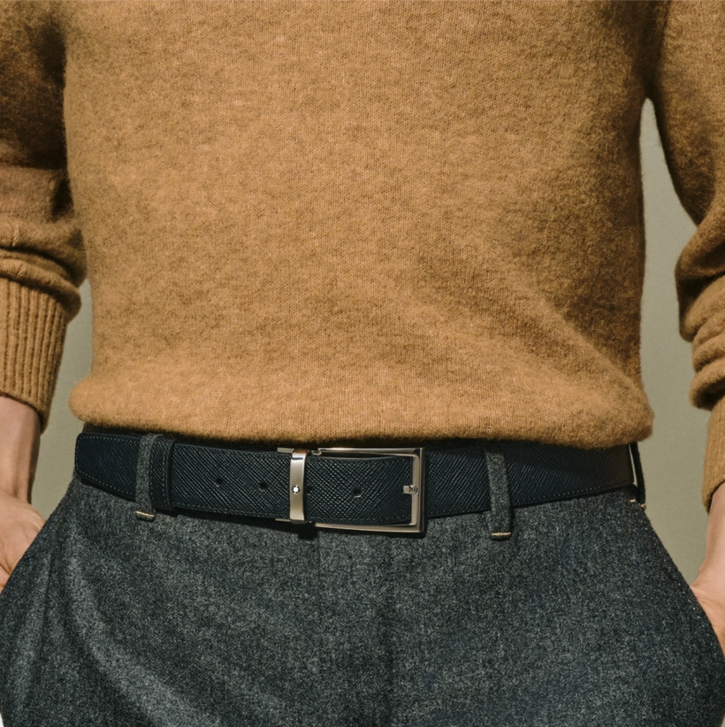 Двухсторонний мужской ремень Montblanc: кожа черного и коричневого цвета 35 мм от магазина премиальных ручек Premium Pens в Астрахани.